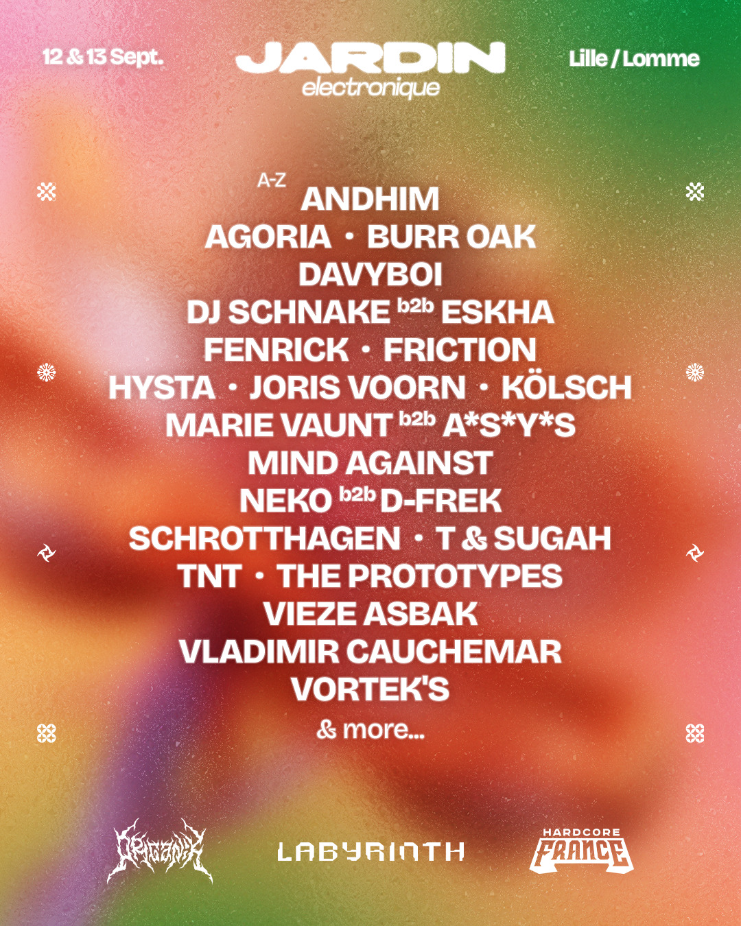 Le Jardin Électronique est un festival de musiques électroniques qui se tient chaque été à Lille, au cœur du parc Naturelle Urbain de Lomme. Sur deux jours, le site se transforme en véritable espace immersif dédié à la fête, à la découverte musicale et à l’expérience collective.